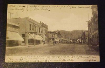 GRANTS PASS OREGON STREET SCENE ANTIQUE POSTCARD