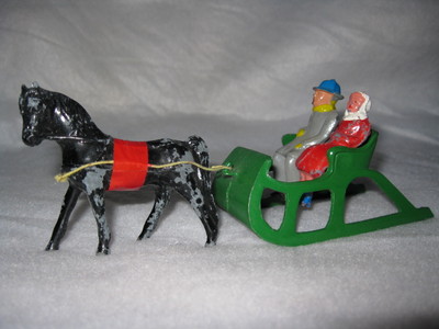 Title (ebay affiliate link): Vintage 40's Barclay Metal People Sleigh Horse Sled Winter Scene!