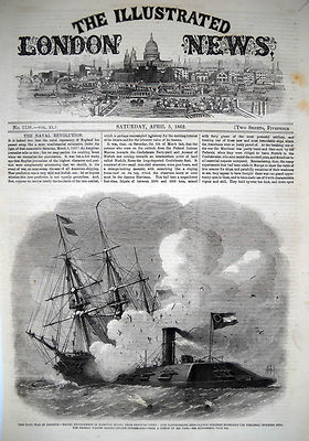 Title (ebay affiliate link): 1862 The Illustrated London News Civil War print, Gun Boats at Hampton Roads