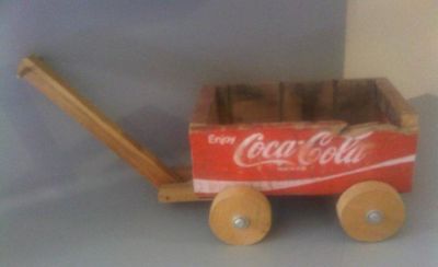 Title (ebay affiliate link): Vintage Coca Cola Coke Wooden Cart Wagon on Wooden Wheels