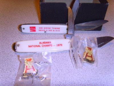 Alabama National Champs in 1979 & Bear & Me 315 -2 Commemorative knives and pins