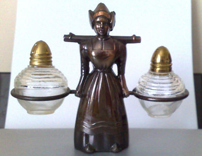 Title (ebay affiliate link): A CAST METAL DUTCH MILK MAID CARRYING A GLASS SALT & PEPPER SHAKER - 198gm.