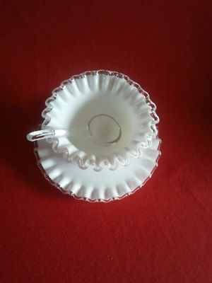 White Milk Glass Gravy Bowl Set With Glass Spoon