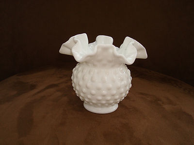 Fenton Milkglass Hobnail Ruffled Small Bowl