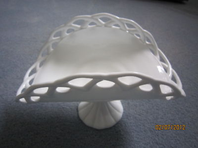Title (ebay affiliate link): Vintage Milk Glass Lace Edge Fruit/ Banana Bowl Pedestal 13"x 8"x 9" high