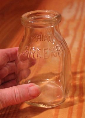 Title (ebay affiliate link): Greenfield Dairy Glass Half Pint Cream Bottle Jar 4 1/2" Perfect!