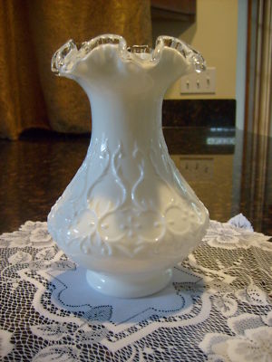 Vintage 8" Milk Glass Ruffled Top Vase