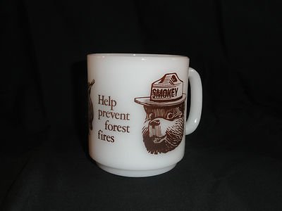 Vintage GlasBake Milk Glass "Smokey the Bear" Mug
