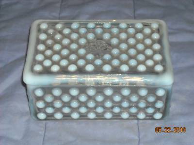 OLD WHITE HOBNAIL GLASS BOX WITH LID