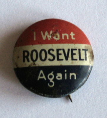 Title (ebay affiliate link): Roosevelt "I Want Again" President Cello Campaign Button Political Pinback Pin