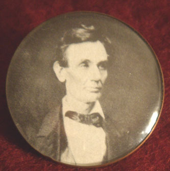 Title (ebay affiliate link): Vintage Folk Art Button with Portrait Print of Abraham Lincoln in Copper Frame