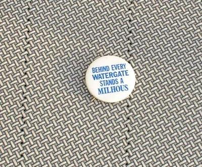 Mid 1970s Nixon Slam Pinback Button Behind Every Waterrgate stands a Milhous