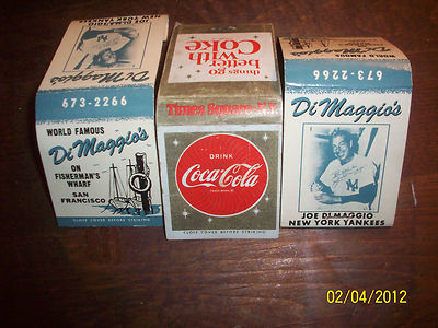 Title (ebay affiliate link): Vintage front strike matchbook lot Joe Dimaggio Yankees CocaCola NY Times Square