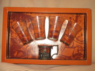 1890 FLAIR GLASSES AND A HOLDER FOR COKE