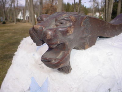 Antique Oak ~ Lion Head ~ Hand carved chair arm Architectural element Victorian