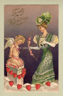 Title (ebay affiliate link): VALENTINE POSTCARD - Cupid / Beautiful Woman - Langsdorf 1909