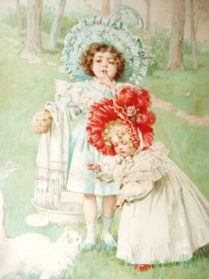 Title (ebay affiliate link): Fantastic 1899 MAUD HUMPHREY Little Girls & Cat FAIRY SOAP Advertising Print