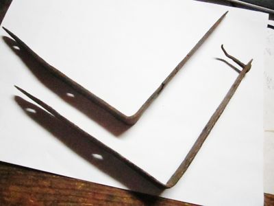 18TH C FORGED IRON SHELF BRACKETS/ HANG BETTY LAMP ROSE HEAD1760-99 AAFA