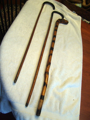 Title (ebay affiliate link): Lot, 3 Old Antique Walking Cane, Walking Sticks, 2 Similar Style, 1 Burl Head