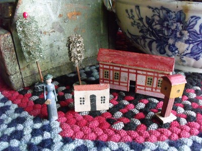 Adorable Primitive Antique Folk Art Doll Lot House Doll Corn Cob Trees