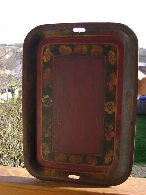 Title (ebay affiliate link): Vintage Primitive Toleware Tray Fruit and Floral Design