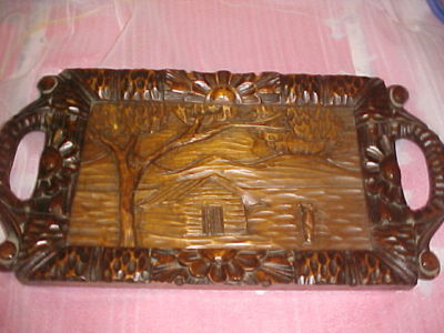 Title (ebay affiliate link): Antique Folk Art Spoon Carved Wood Serving Tray w Glass