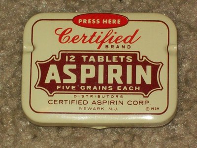 Title (ebay affiliate link): Vintage-Medical-Medicine-Tablets-ASPIRIN-Tin-CERTIFIED-Empty