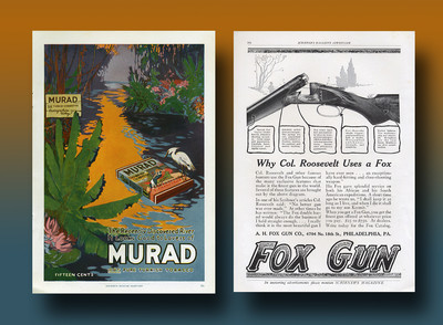 Vintage 1914 Murad Cigarette Ad + Fox Shot Gun Full page Ad
