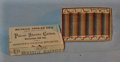 Title (ebay affiliate link): VINTAGE ADVERTISING DOMESTIC SEWING MACHINE MERRICK THREAD CO 6 SHUTTLES 200 yds
