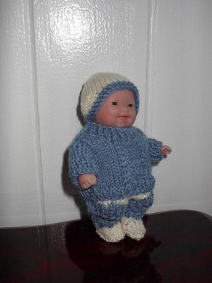 Title (ebay affiliate link): Berenguer 5" Handknit 4 Piece Boy Outfit - Blue & Antique White