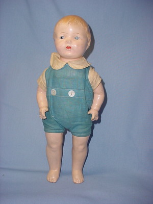 Title (ebay affiliate link): VNTAGE (ANTIQUE) HORSMAN BOY BABY /CHILD DOLL BLUE ROMPER GLASS OR SHELL BUTTONS