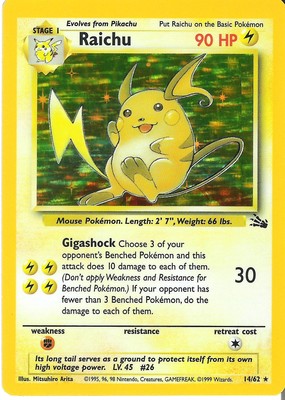 Title (ebay affiliate link): Raichu Holo 14/62 Fossil Set NM Pokemon Card