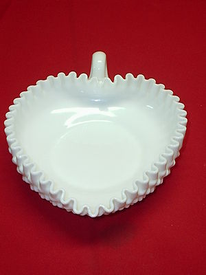 FENTON HEART SHAPED HOBNAIL MILK GLASS RELISH DISH