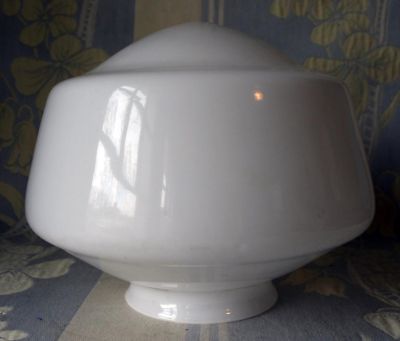 Title (ebay affiliate link): VINTAGE MILK GLASS SCHOOLHOUSE LAMP SHADE 27" circ. GLOBE 4" OPENING, 7.5" DEEP