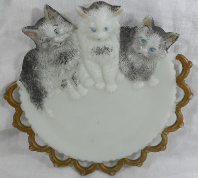 Title (ebay affiliate link): VINTAGE WESTMORELAND MILK GLASS HAND PAINTED THREE KITTEN BEADED EDGE PLATE