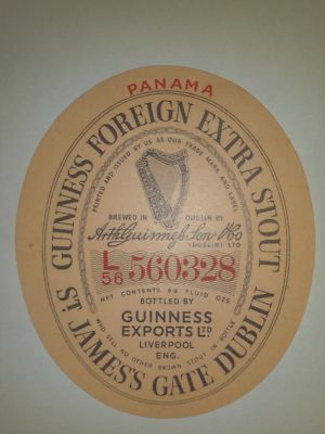 Title (ebay affiliate link): Guinness Foreign Extra Stout Panama, St James's Gate Dublin 1956
