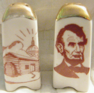 Title (ebay affiliate link): VTG Porcelain Salt & Pepper Shakers President Abraham Lincoln Log Cabin