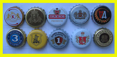 10 Different Beer bottle caps from Belarus, Ukraine and Russia