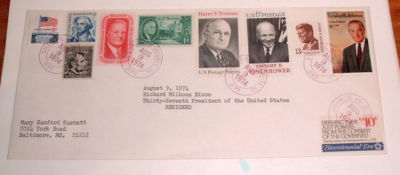 Title (ebay affiliate link): Unique Postal Cover addressed to Pres Nixon August 9, 1974 Resigned Must See