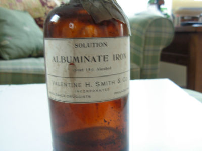 Antique Druggists Bottle-ALBUMINATE IRON,Valentine H.Smith & Co. Philadelphia