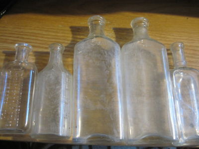 LOT OF 5 MEDICINE-APOTHECARY BOTTLES. TAKE A LQQK! ESTATE BUY!!