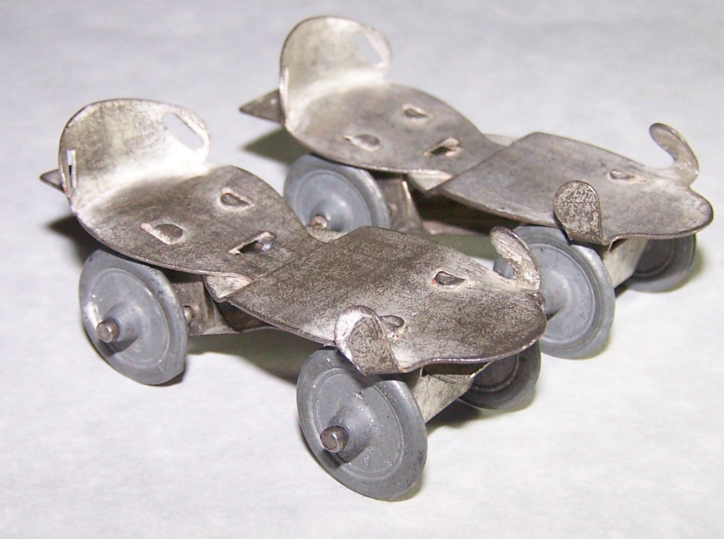 Antique DOLL Roller Skates Tin Strap On w/Metal Wheels