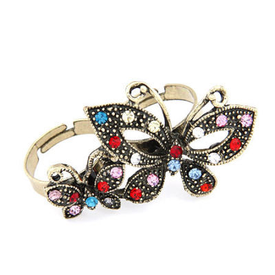 Title (ebay affiliate link): R1107 Antique Bronze Colorful Crystal Butterfly Two Finger Ring Adjustable