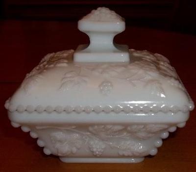 Title (ebay affiliate link): LOVELY Vintage Westmoreland Milk Glass Grapes & Vines Pattern Covered Candy Dish