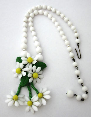 Vintage Milk Glass Bead Daisy Necklace West Germany