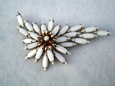 Title (ebay affiliate link): Vintage White Milk Glass Navette pin brooch Starburst design 1960s BEAUTY