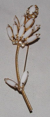 Title (ebay affiliate link): Beautiful Vintage Milk Glass And Clear Rhinestone Flower Pin Brooch