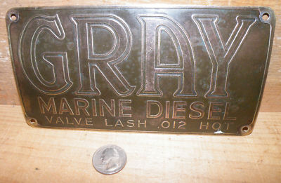 GRAY MARINE DIESEL VALVE LASH BRASS SIGN