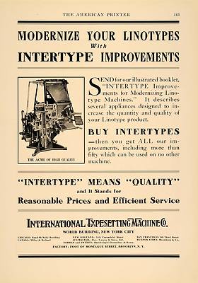 1913 Ad Intertype Linotype Typesetting Machine Antique - ORIGINAL ADVERTISING