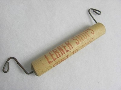 Vintage Lerner Shops Wooden Advertising Package Box Carrier Handle!